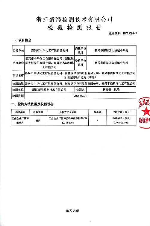 - 中華化工3季度噪聲檢測(cè)報(bào)告