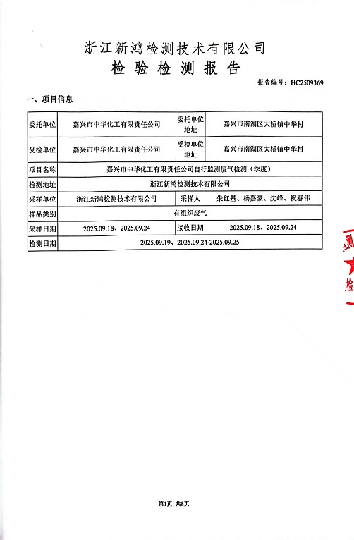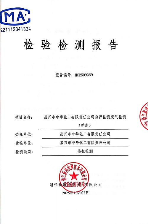 報(bào)告名稱:中華化工3季度廢氣檢測報(bào)告