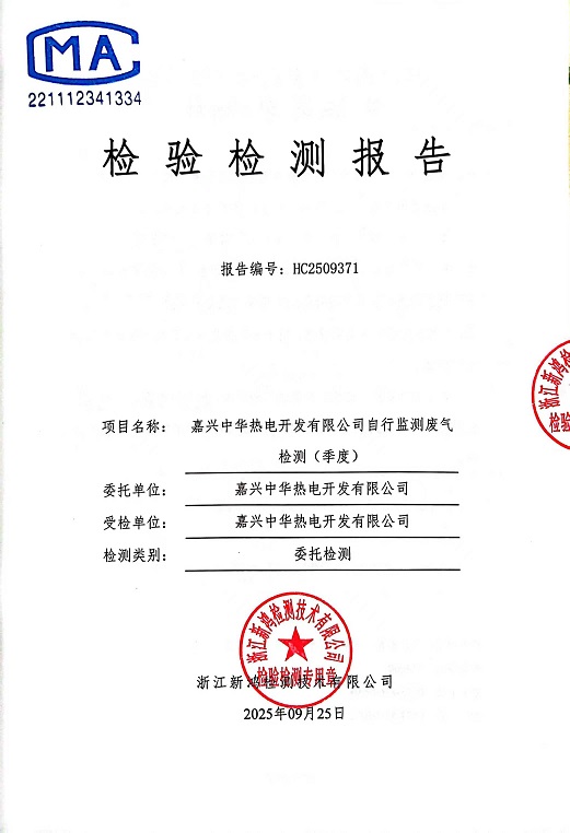 - 中華熱電9月廢氣檢測(cè)報(bào)告
