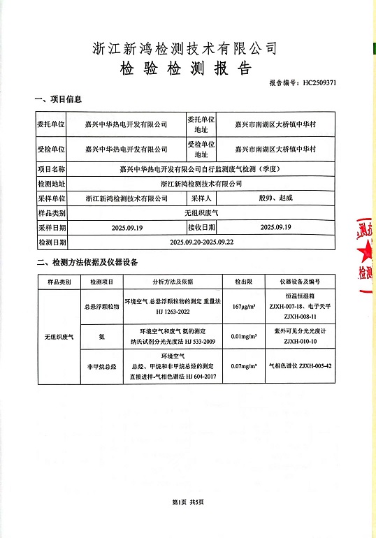 報(bào)告名稱(chēng):中華熱電3季度廠界檢測(cè)報(bào)告